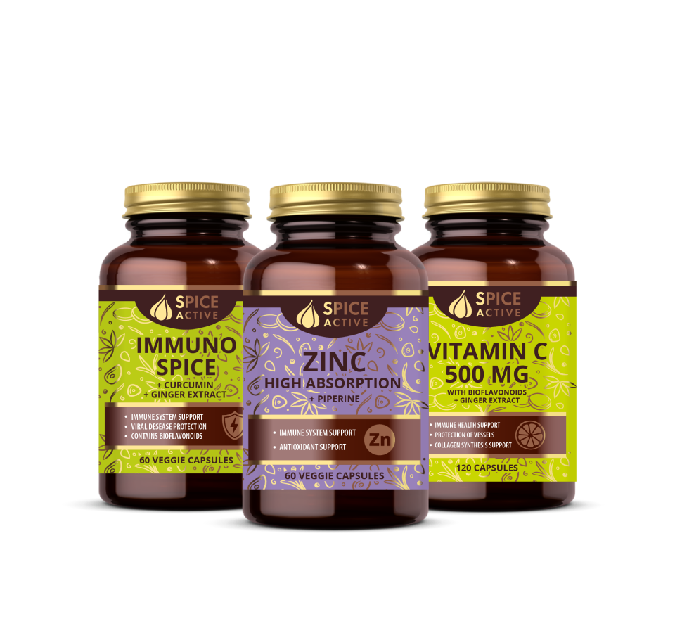 В СОСТАВ КОМПЛЕКСОВ SPICE ACTIVE ВХОДЯТ БИОБУСТЕРЫ (ПИПЕРИН, КУРКУМИН, ИМБИРЬ, ШАФРАН, ЧЕСНОК) – БИОУСИЛИТЕЛИ ДЛЯ ПОВЫШЕНИЯ УСВОЯЕМОСТИ ОСНОВНЫХ ДЕЙСТВУЮЩИХ ВЕЩЕСТВ БЕЗ ПОВЫШЕНИЯ ИХ ДОЗИРОВКИ.Помогают проводить активные вещества через физиологические барьеры организма